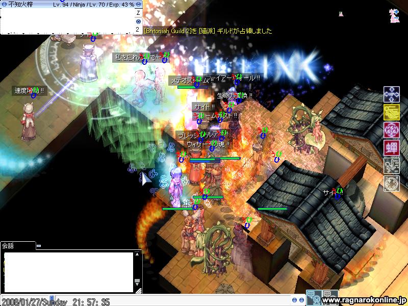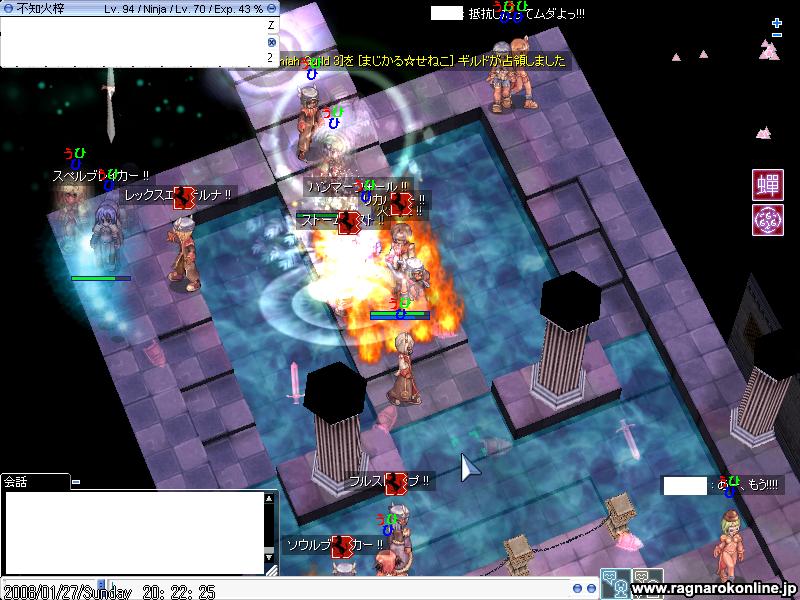 アチャ:敵のWIZとプリに火炎陣を連射して、詠唱と移動を妨害しているそうです。大して効いてないようですが。