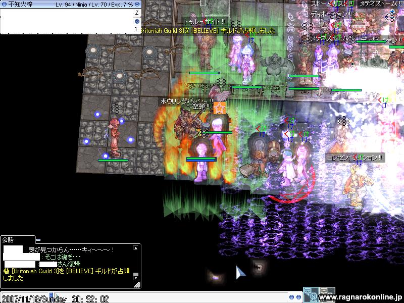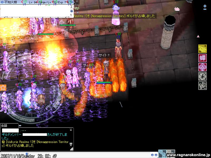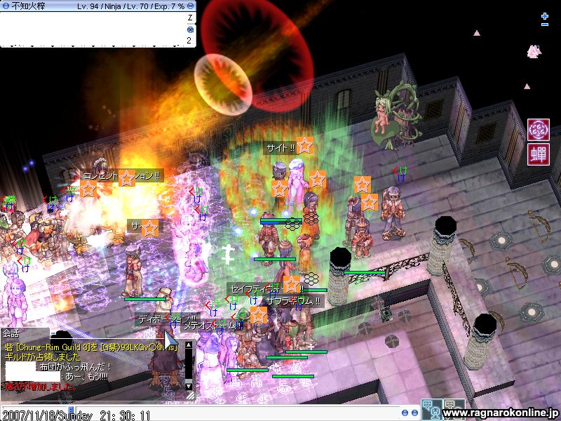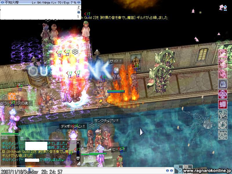 ソル:今回は開始時にV3とV5に戦力を分割して、同時防衛開始なんだぜ! アチャ:守りきれるはずもないでしょうに、無謀ですね。 ソル:おっと、さっそくV3に全軍突撃を始めとして、複数の同盟が攻めてきたぞ! LSDC同盟も混じっているようだぜ! 半端な戦力で守りきれるのか? アチャ:V5でEMCして、戦力をまとめるようです。 ソル:いきなり逃げるのかよ! アチャ:どうやら最初から、守れそうな方の砦に戦力を集結させる作戦だったようですね。 ソル:てな訳で、V5で防衛開始だ。今度は逃げないだろうな? アチャ:現状のGv仕様では、よほど戦力差がない限り2時間防衛は不可能ですからね。この調子で逃げ回る算段でしょう。 ソル:何だよ、えらく弱腰じゃねーか。 アチャ:ここの同盟は貧乏な上に弱兵揃いなので、まともに戦う力はないんですよ。 ソル:本当にしょうがねぇ連中だな。遙か、GB、SSSSと、敵の目白押しだ。様子見程度だが、ぞろぞろ来てるぜ。っと、今週から同盟を強化した冥が来たぞ! アチャ:ギルド名には敬称をつけなさい。冥さんのLPが何度か決まり、ロキ防衛が決壊しましたね。戦力差と砦の構造を考えれば、当然の流れでしょう。 ソル:今度はV1に逃げるみたいだな。 アチャ:この時間帯のVは激戦区ですね。LSDCさん、さくら冥さん、WOFさんなど、強豪がひしめいていますよ。 ソル:ああ……こりゃダメだろ。勝てねぇ。 アチャ:現場の不知火さん、そちらはどうですか? 不知火:ぎゃー! ソル:今のは何だ? アチャ:カウプとカイトを剥がしにERから出て、火炎陣を出すだけ出して死亡した模様です。 ソル:無謀もいいところだろ。 アチャ:空蝉を過信しすぎですね。 ソル:おっと、馬鹿が死んでる間に戦況が動いたようだぜ。 アチャ:激戦区のVを避けて、B3で防衛開始の模様です。 ソル:残り時間を考えると、この同盟で守りきるのは難しいんじゃねえか? アチャ:各地に偵察を送っているようですね。逃げる準備だけは万全のようです。 ソル:戦術としては正しいんだろうが、果てしなく後ろ向きだな……。 アチャ:さくら冥さんの襲撃です。これはかなり厳しいですね。 ソル:おーい、また逃げるみたいだぞ。今度はどこだ? アチャ:結局またV1に戻ってきましたね。 ソル:ほんとVが好きだな、この同盟は。 アチャ:今週もマヤパCは出なかった模様です。 ソル:ところで、ベースキャンプの方で何かごそごそやってるんだが……。 アチャ:おや、少人数派遣を出すようですね。 ソル:うおおっ!? 終盤のV5を奪取したぞ! またもや2砦かっ! アチャ:本当に、悪運だけは強い同盟ですね。 ソル:ここでGv終了! 今週はV1とV5の2砦だーっ! アチャ:何なんでしょう、この理不尽な砦の取り方は……。 愛すべき戦争キ○ガイども、砦は取れたか!? 今週の攻城戦はここまでだ。お疲れ! また来週殺し合おうぜ! それまで死ぬんじゃねぇぞ! ヒャッハー! 皆さん、お疲れさまでした。皆さんのギルドと未来に、オーディンの栄光があらんことを。 ではまた来週お会いしましょう。 ヘイヘイ、相変わらずお前の台詞は辛気くせーな! お前に熱いGv魂はねぇのかよ! 何が詰まってるんだ、その胸には! ルーン機関以外の何だと言うのです。
